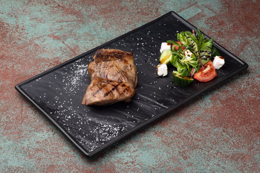 Стейк из бедра индейки (150/50гр.) 720 руб. В корзину Описание Описание Подается с миксом салата, овощей, сыром Фета и оливковой заправкой.