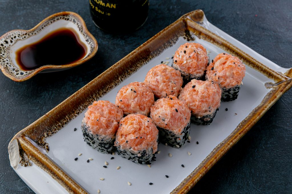 Запеченный фараон 690 руб. В корзину Описание Описание Лосось, снежный краб, черная масаго , сливочный сыр, кунжут, унаги соус, сырный соус